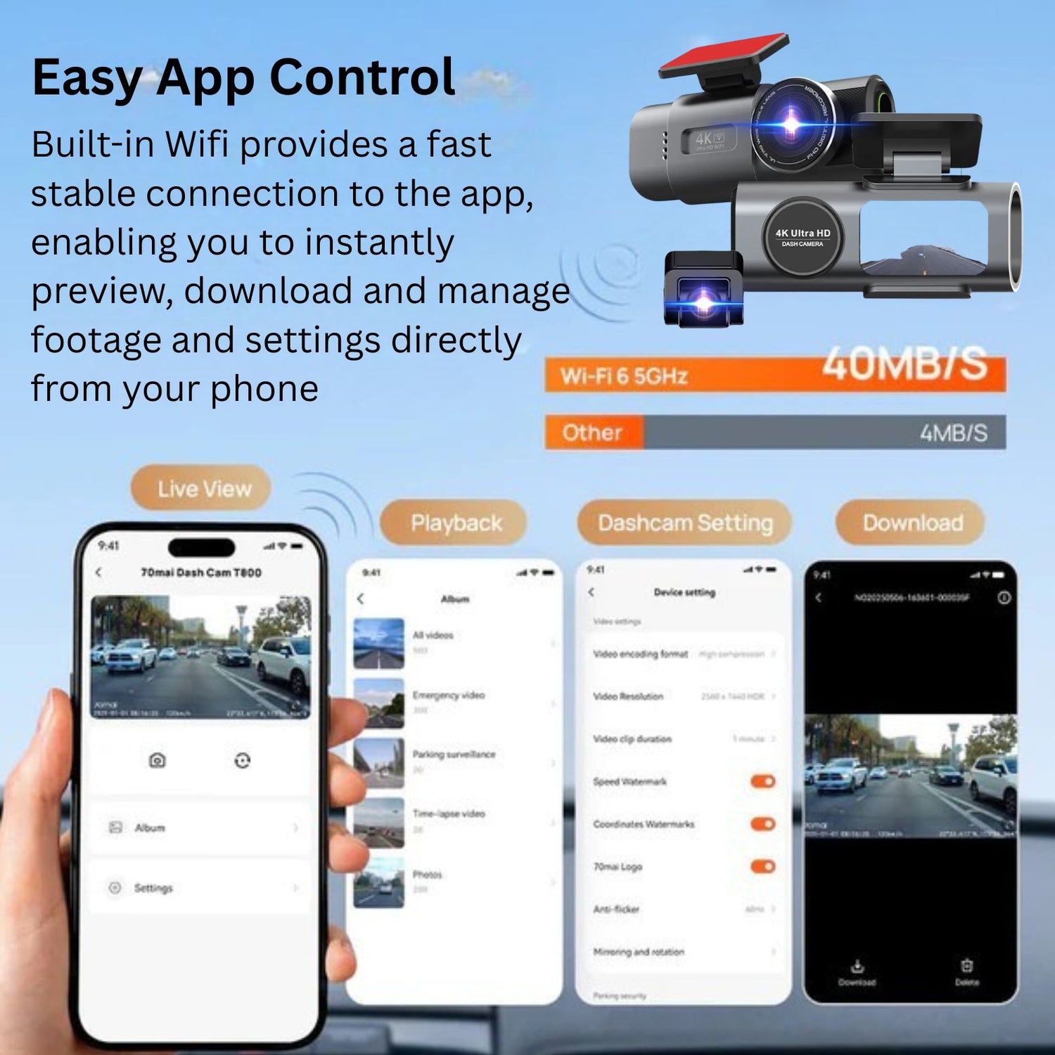 With the Lumi RoadEye companion app, you’re always in control of your footage. Instantly connect your smartphone via Wi-Fi to preview recordings in real time, download important clips, and manage your videos with ease — all without removing the dashcam from your car.