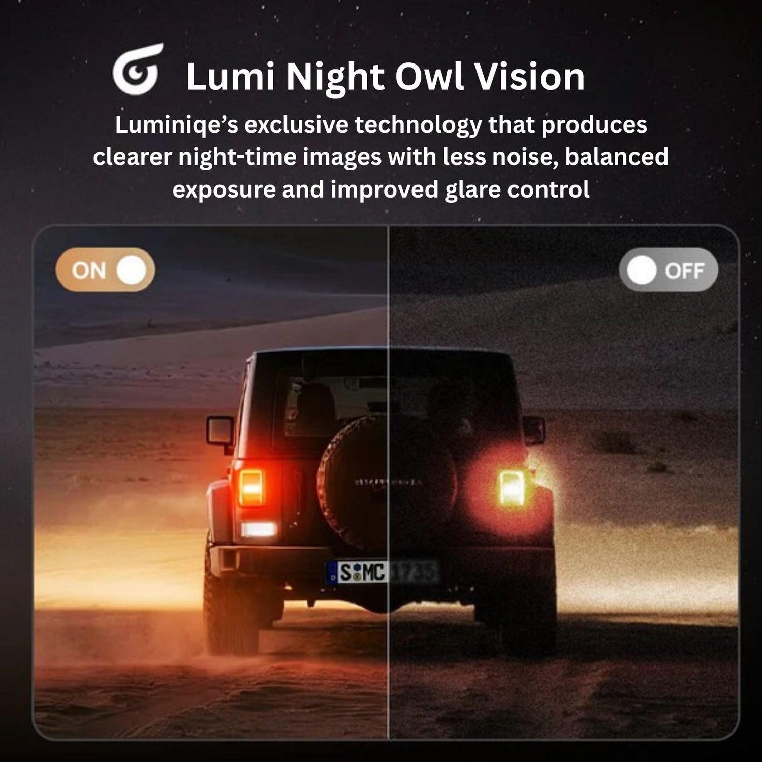 Lumi Night Owl Vision ensures your Roadeye captures every detail, even in complete darkness. Using advanced low-light sensors and intelligent exposure technology, it delivers clear, sharp footage without glare or graininess.